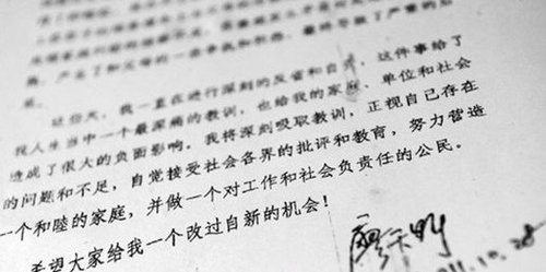 首先,我想借這封信向含辛茹苦把我養(yǎng)育成人的父母親人表示最深切的懺悔!對給培養(yǎng)我成才的學(xué)校和一直關(guān)心幫助我成長的單位造成的負面影響表示最真切的歉意!同時也對給所有關(guān)注此事的公眾帶來的情感上的傷害表示最誠懇的道歉!