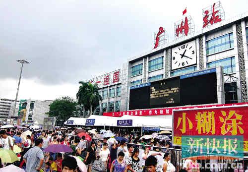廣州站和廣州東站通過京廣鐵路運(yùn)行的列車服務(wù)都受到影響,廣州火車站地區(qū)昨天中午一度滯留了過萬名旅客,嚴(yán)重程度僅次于2008年雨雪冰凍災(zāi)害時(shí),車站售票廳因此實(shí)行只退票不售票。