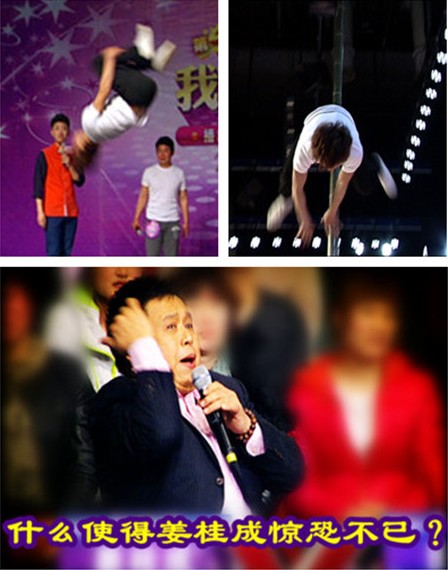 今晚,黃長健與他的搭檔表演的空中竿上表演,非常驚險(xiǎn)刺激。首先他的搭檔把一根高6米多的竹竿扛在肩上,在沒有任何防腐措施的情況下,黃長健在高度6米(包括底下的人共7米多高)的竹竿上,表演了多種高難度的驚險(xiǎn)動(dòng)作,令在場(chǎng)的所有觀眾與三位評(píng)委老師嘆為觀止,叫絕聲一片,真可稱得上是“藝高膽自大”,雖然觀眾與評(píng)委們被他們的驚險(xiǎn)表演嚇出了一身冷汗,但是他們兩個(gè)表演完顯得輕松自如、非常的淡定,這就叫真正的“功夫”,黃長健與他的搭檔最終順利晉級(jí),希望黃長健能夠闖進(jìn)年度總決賽,獲得好成績(jī)。衷心祝福您----雜技小子黃長健!