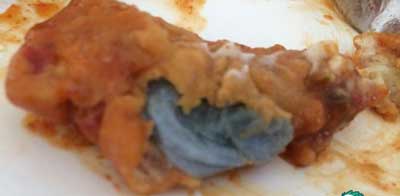 亨德森在采訪中說(shuō)道:“奧利弗將炸雞從口中拿出時(shí)已經(jīng)呈面糊狀,但可以看出其中的藍(lán)色毛巾卷!焙嗟美硎,這甚至比發(fā)現(xiàn)壞炸雞還嚴(yán)重,如果這是壞炸雞,可能僅是一小部分壞了。然而該藍(lán)色毛巾必定是之前另作他用,譬如供人擦手或擦地板,極有可能沾有漂白劑或消毒劑?系禄{(diào)查了該事件,并向亨德森寫(xiě)了一封致歉信,解釋道,這藍(lán)色紙巾可能是供其做衛(wèi)生用的毛巾,并聲稱(chēng)它一定是落入篩下包滿(mǎn)面包的手柄而廚師并未注意到。