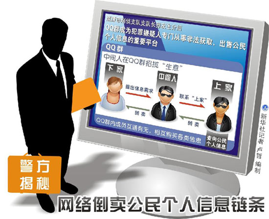 “黑土草莓”系湖北省某市水利設(shè)計院駐鷹潭的一名工作人員,2010年起,通過加入QQ群專門從事非法獲取、出售公民個人信息活動。他告訴記者,一般一條信息的出賣經(jīng)過“上家”“中間人”“下家”三個環(huán)節(jié)。即先由“中間人”通過網(wǎng)上、QQ群發(fā)布廣告,招攬生意;“下家”向“中間人”提出信息需求;“中間人”聯(lián)系能夠提供這些信息的“上家”,再進行轉(zhuǎn)賣。