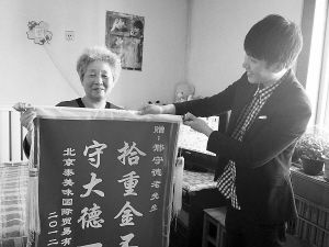原來,為了避免失主著急,熱心的老兩口在詢問兒子小張身份證上的住址之后,一大早便找到了他的家中……“當(dāng)天兒子回來后,我就讓他趕緊查一下身份證上的住址是在哪,由于老邢的年齡太大了,便由我去完成這件事!鼻竽镄χf。終于幾經(jīng)周折,曲大娘找到了小張的家,在與其父親核實(shí)了之后,才給小張打了電話!爱(dāng)時我都不知道說什么了,特別感激這兩位老人,而老人卻只是說這是他們應(yīng)該做的!毙堈f。為了感謝兩位老人,昨日,小張?zhí)匾庾隽艘幻驽\旗送到了邢大爺家中。對此,正在家中休息的曲大娘卻覺得十分不好意思,“其實(shí)這些都是我們應(yīng)該做的,做事情的時候應(yīng)該為別人多考慮下,這樣自己也能開心!鼻竽镎f。 |