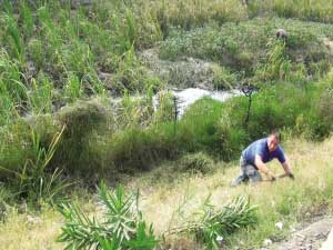 手持鐮刀割草的,可不是當(dāng)?shù)氐霓r(nóng)民。他是溫嶺人,7號(hào)這天他跟老婆,還有一個(gè)朋友在外面玩了一圈后打道回府。